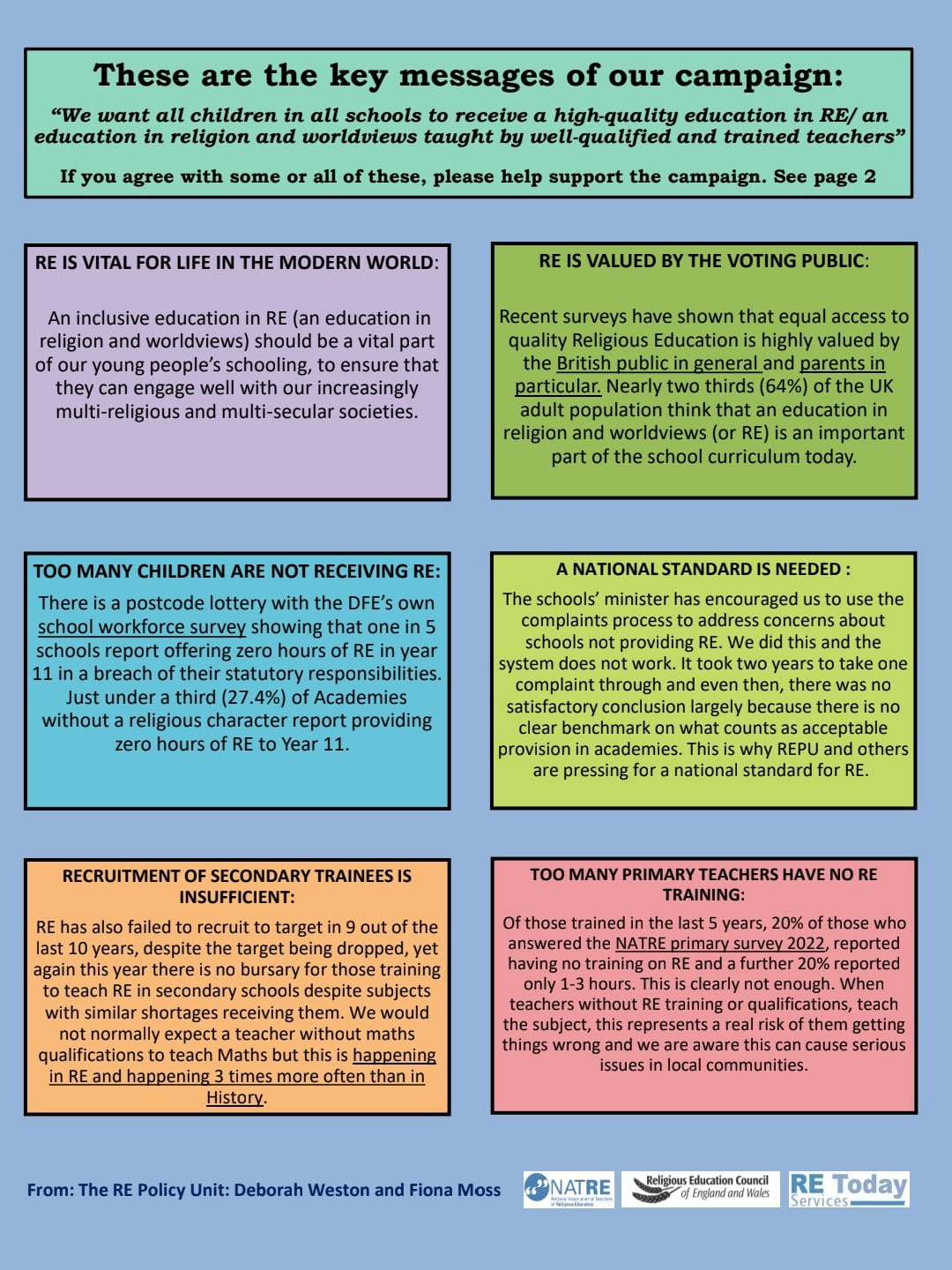 - Who teaches RE to the nations secondary schools_Infographic.pdf (natre.org.uk) https://www.natre.org.uk/uploads/Additional%20Documents/Who%20teaches%20RE%20to%20the%20nations%20secondary%20schools_Infographic.pdf